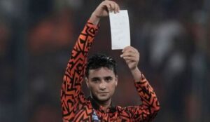 जैसे ही युवा खिलाड़ी ने यह उपलब्धि हासिल की, उप्पल में मौजूद पूरी भीड़ खुशी से झूम उठी और खड़े होकर तालियाँ बजाने लगी। इस शतक के साथ, अभिषेक शर्मा ने आईपीएल के इतिहास का छठा सबसे तेज़ शतक दर्ज किया।शतक पूरा करने के बाद अभिषेक शर्मा ने एक सफ़ेद कागज़ दिखाया और उसे भीड़ की तरफ़ दिखाते हुए देखा गया। जब कैमरे ने कागज़ पर ज़ूम इन किया, तो कोई भी पढ़ सकता था, “यह ऑरेंज आर्मी के लिए है।”