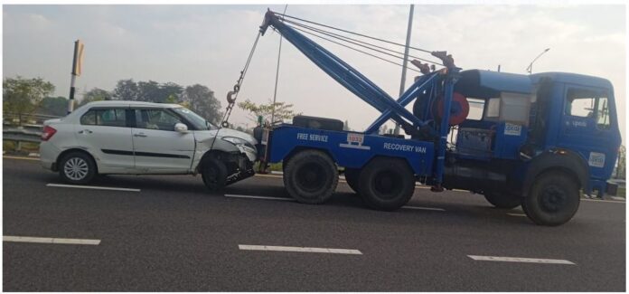 कार अनियंत्रित होकर मध्य लेन में पहुंची