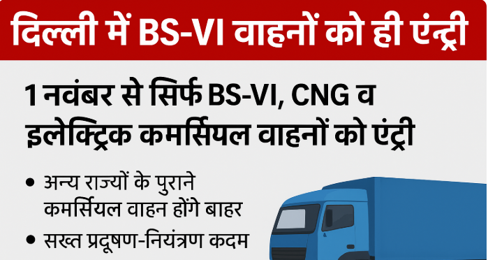 राष्ट्रीय राजधानी नई दिल्ली में बढ़ते वायु प्रदूषण के सामने एक कड़ा कदम उठाया गया है। वायु गुणवत्ता प्रबंधन आयोग (CAQM) एवं दिल्ली परिवहन विभाग द्वारा जारी निर्देशानुसार 1 नवंबर 2025 से राजधानी में प्रवेश करने वाले कमर्शियल गुड्स वाहनों के लिए नए नियम लागू होंगे।
