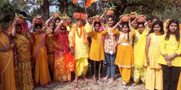 इससे पूरा क्षेत्र आध्यात्मिक ऊर्जा से भर उठा।सुबह कथा स्थल से प्रारंभ हुई यह शोभा यात्रा गांव के प्रमुख धार्मिक स्थलों, जैसे कि मां काली माता मंदिर, हनुमान मंदिर, दुर्गा मंदिर, डिवहारिन स्थान होते हुए पुनः कथा स्थल पर वापस पहुंची। यात्रा में महिलाओं की टोलियां सिर पर कलश धारण किए मंगल गीत गाती हुई चल रही थीं,