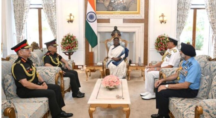 भारत पाकिस्तान युद्ध विराम राष्ट्रपति मुर्मू ने ऑपरेशन सिंदूर के कुछ दिनों बाद भारतीय सेना, नौसेना और वायु सेना के प्रमुखों से मुलाकात की। भारत पाकिस्तान युद्ध विराम समाचार लाइव अपडेट, पीएम मोदी सीसीएस बैठक आज: सूत्रों के अनुसार, यह स्पष्ट नहीं है कि अगली वार्ता डीजीएमओ या संबंधित निदेशालयों के नामित अधिकारियों के बीच होगी।